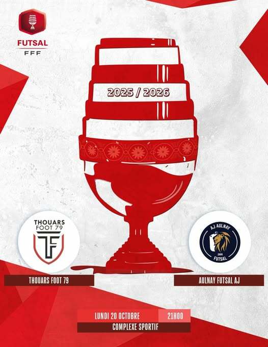 Nos Rouges et Noirs recevront lundi soir, à la salle districale, l’AJ Aulnay, une des meilleures équipes futsal de la région, pour le 2ème tour de Coupe Nationale Futsal Face à une équipe encore invaincue en Régional 1, nos Rouges et Noirs auront besoin du soutien de tous pour obtenir la qualification